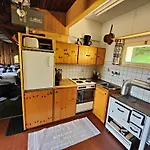 يمكن للضيوف طهي وجباتهم الخاصة في المطبخ كامل التجهيز في فيلا Blockhaus Birentobel.